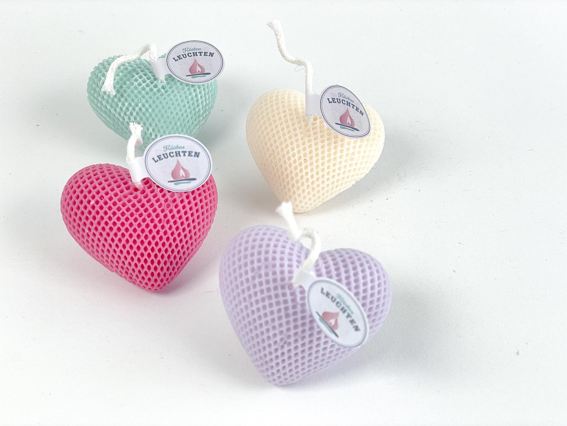 Liebe zeigt sich oft in den kleinen Dingen... So sagt ein Herz zum Verschenken doch mehr als tausend Worte. Die Herzchen mit gemusterter Oberfläche sind besondere Hingucker. Du kannst zwischen zwei Größen und den Farben cremeweiß, eisblau, violett und pink wählen.